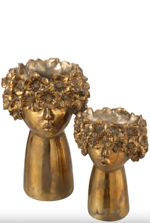 Ce cache-pot décoratif en forme de femme, sublimé par une finition dorée élégante.