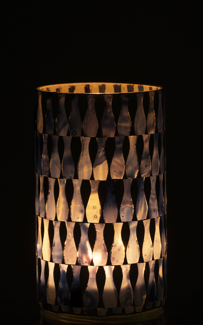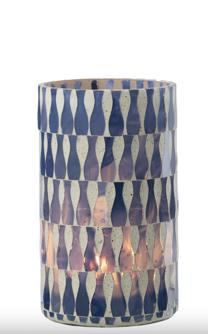 Ce photophore blanc et bleu au design délicat, idéal pour créer une ambiance douce et apaisante.
