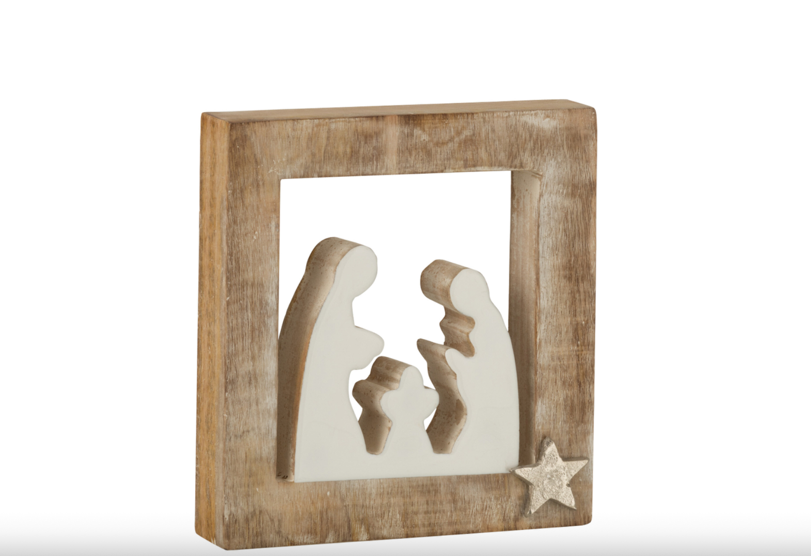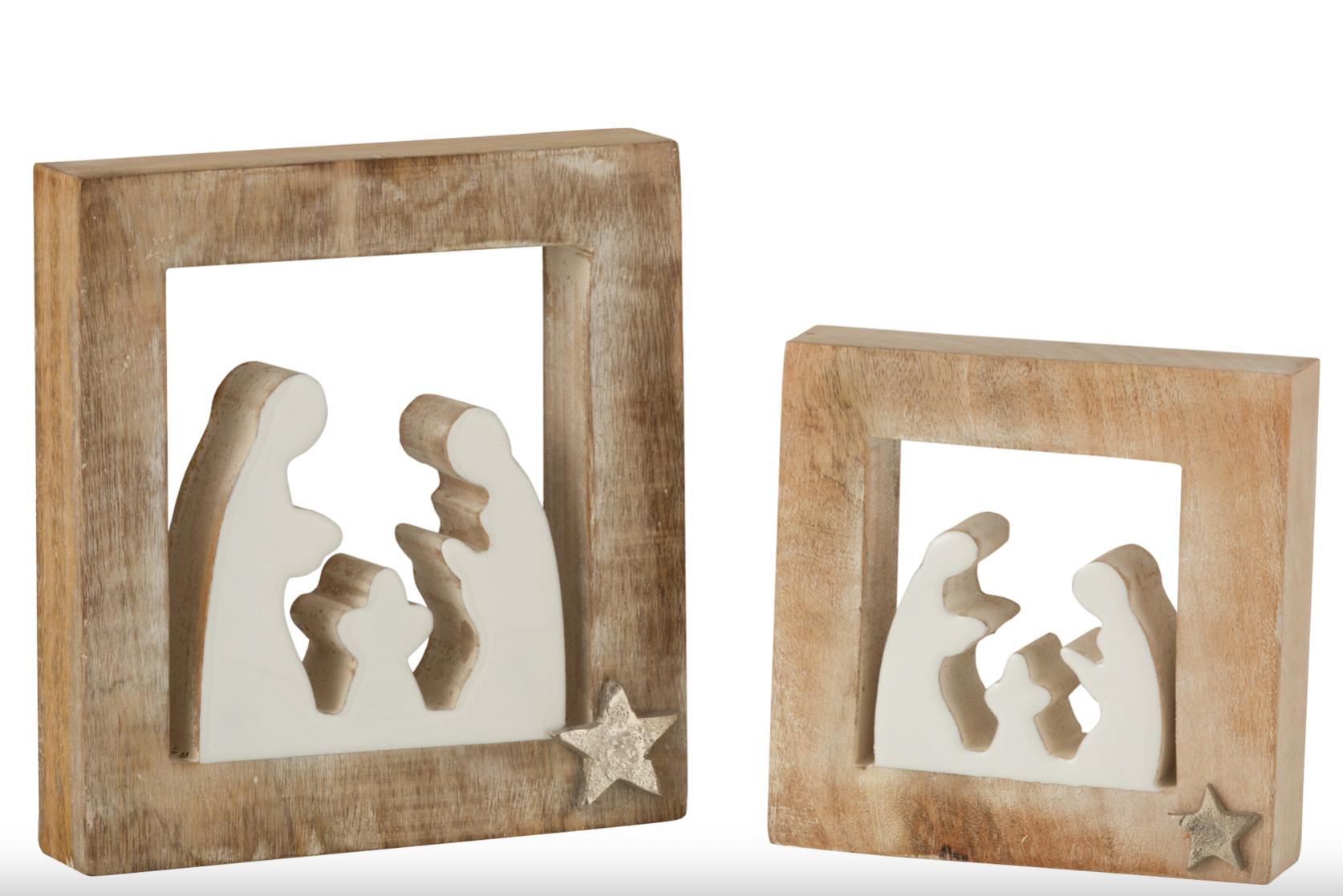 Cette crèche simple et authentique en bois de manguier, aux lignes épurées et au ton chaud naturel.