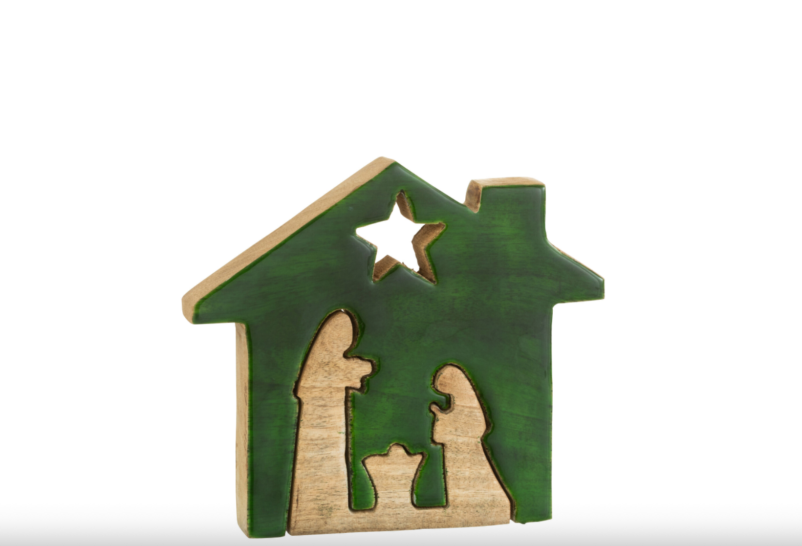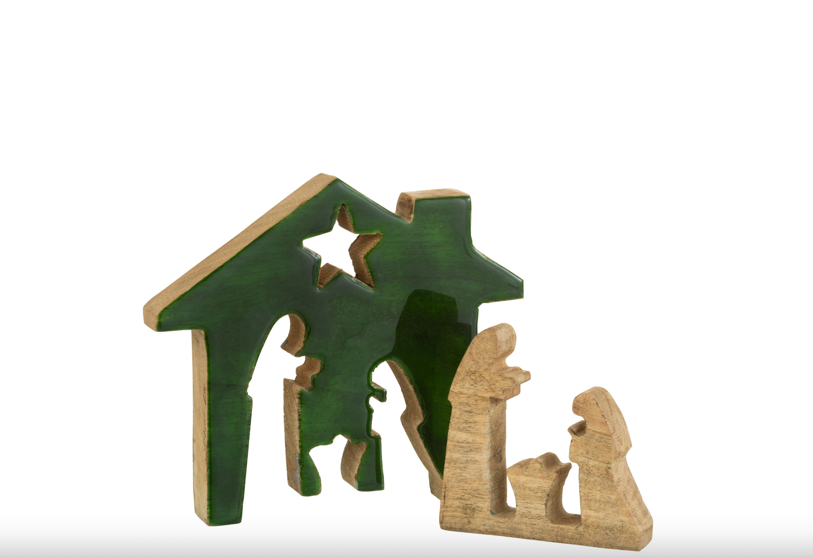 Cette crèche simple et authentique en bois de manguier, aux lignes épurées et au ton chaud naturel.