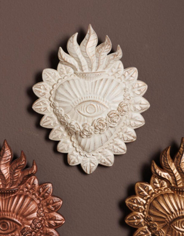 Ces ex-voto décoratifs, déclinés en blanc, doré, bronze et noir, mêlent symbolisme et élégance.