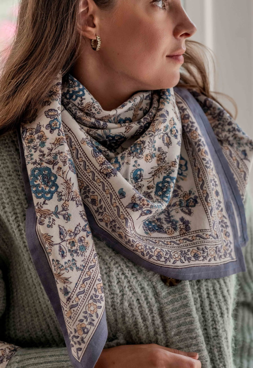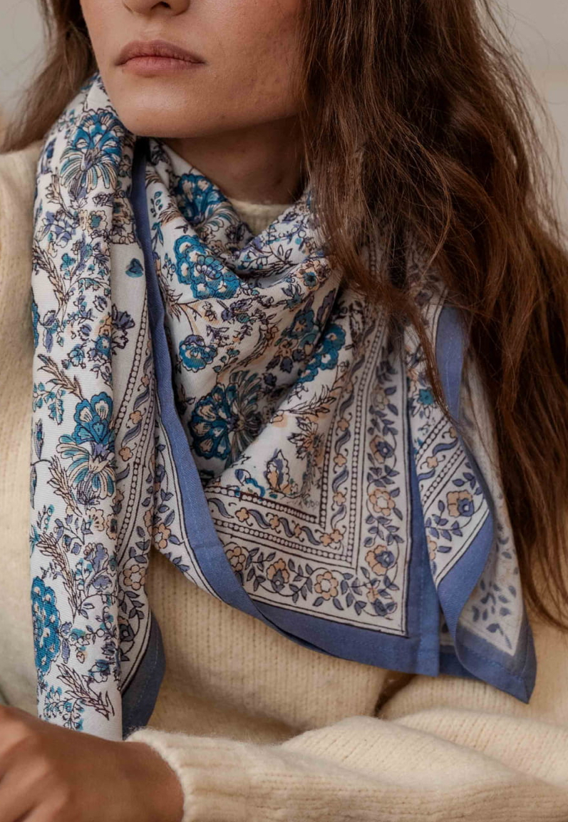 – Foulard imprimé à la main selon la technique indienne du Blockprint
