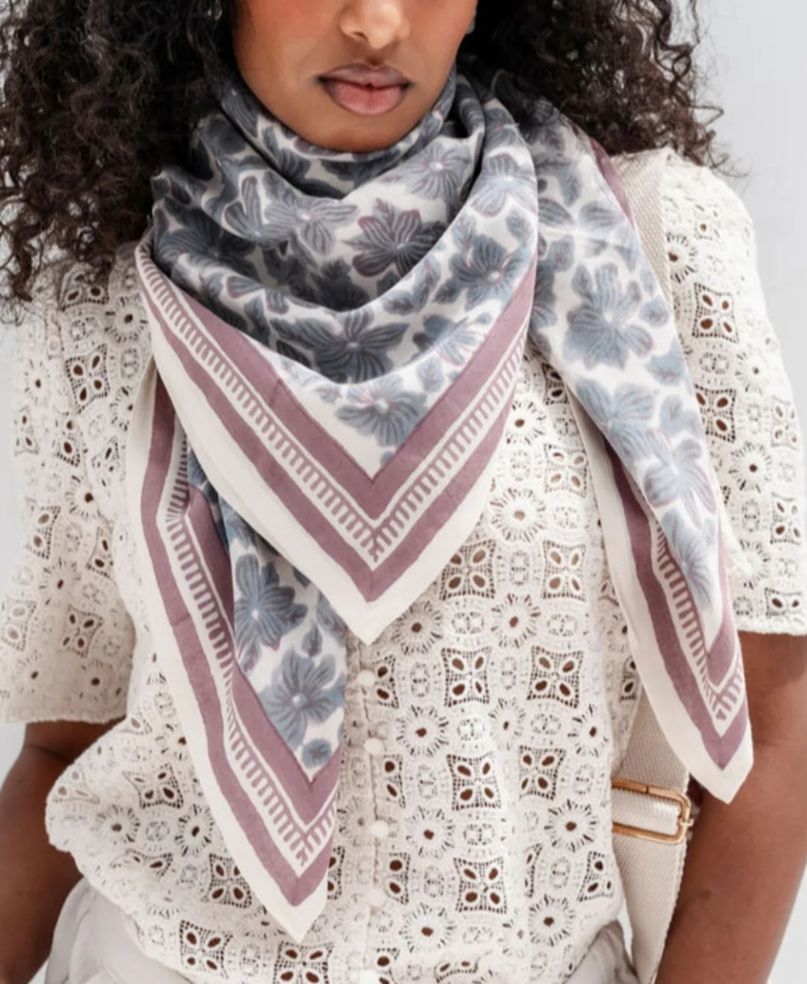 – Foulard imprimé à la main selon la technique indienne du Blockprint