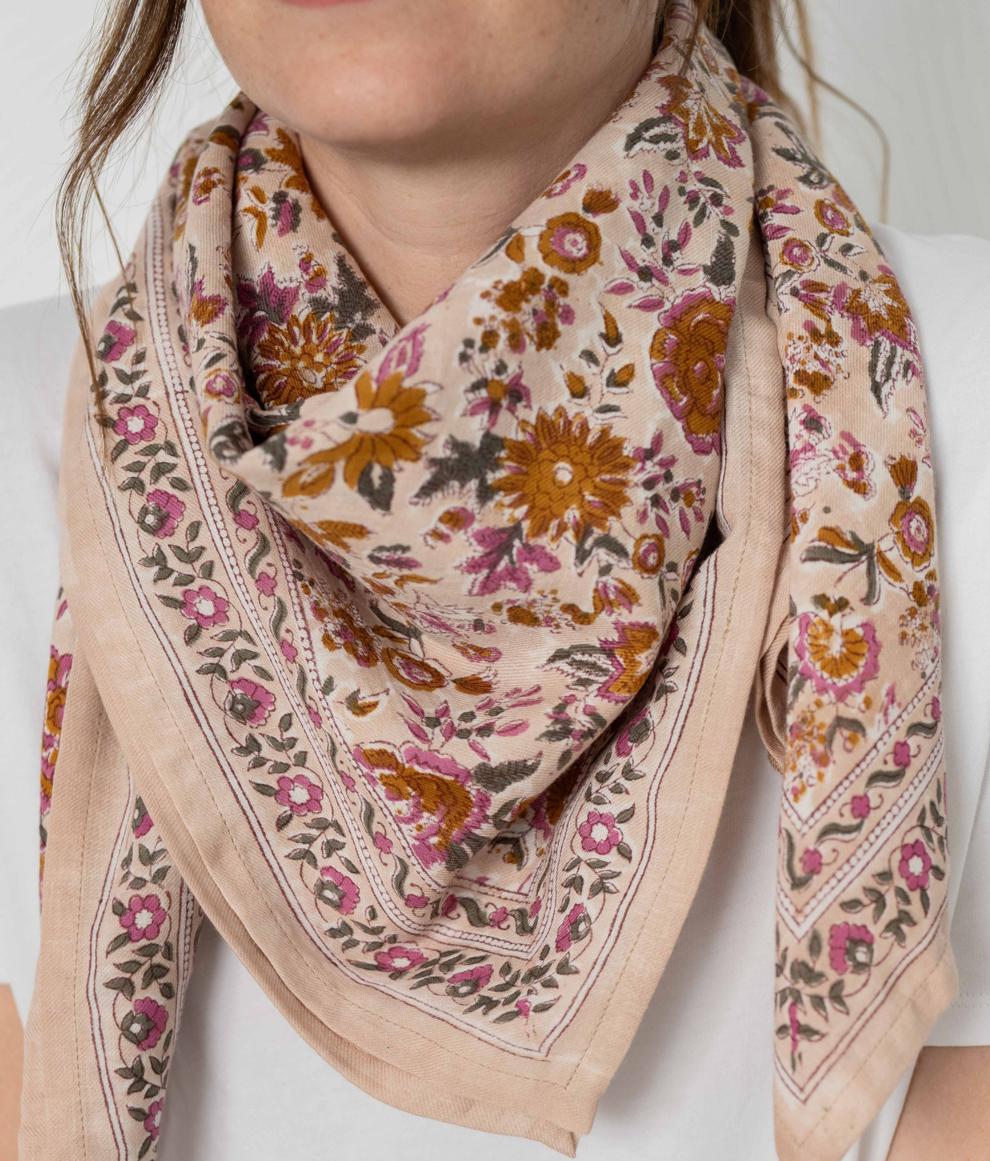 Foulard Rose doux & fleurs- Bindi Atelier
