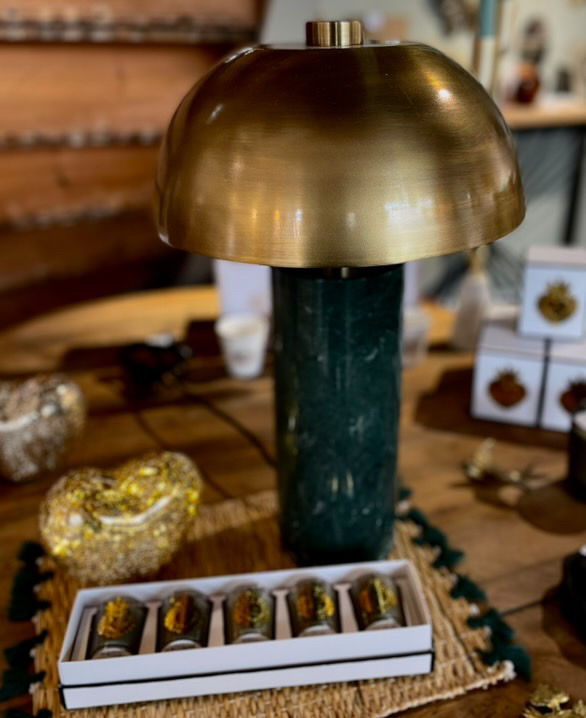 Cette Lampe va donner à votre intérieur un aspect élégant et raffiné grâce à sa matière principale le marbre au tons or et vert qui vont intensifier le côté distingué.