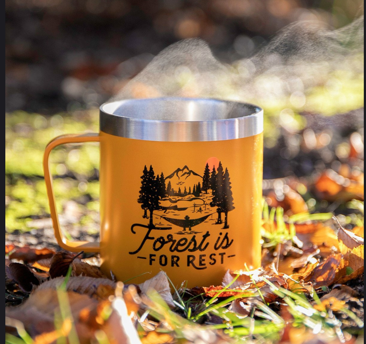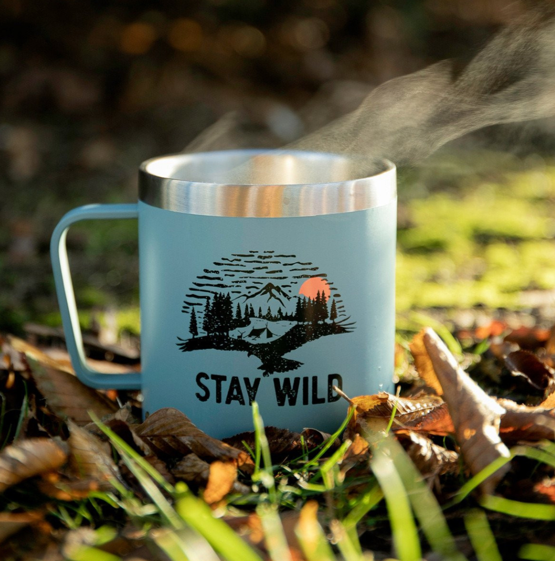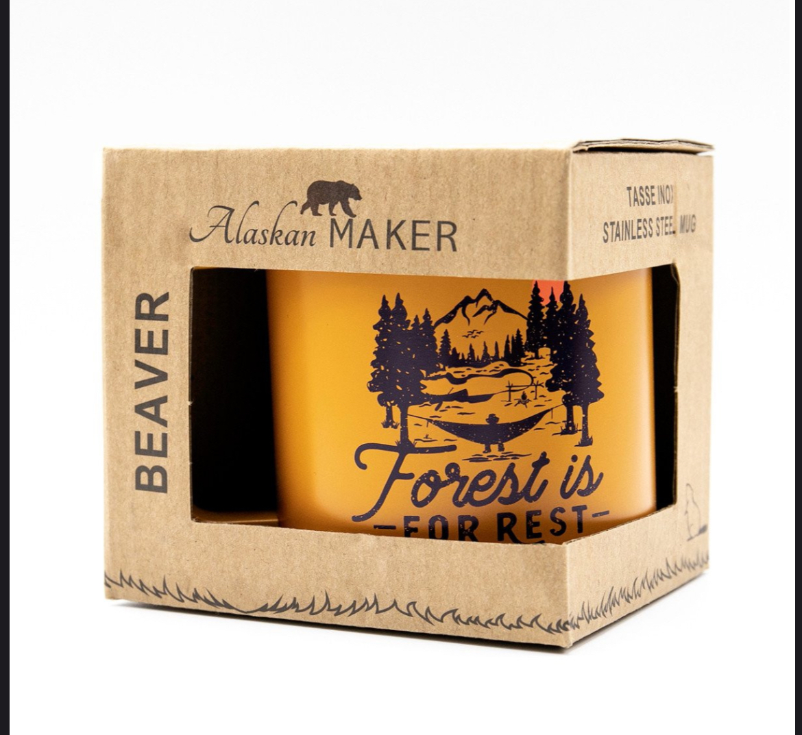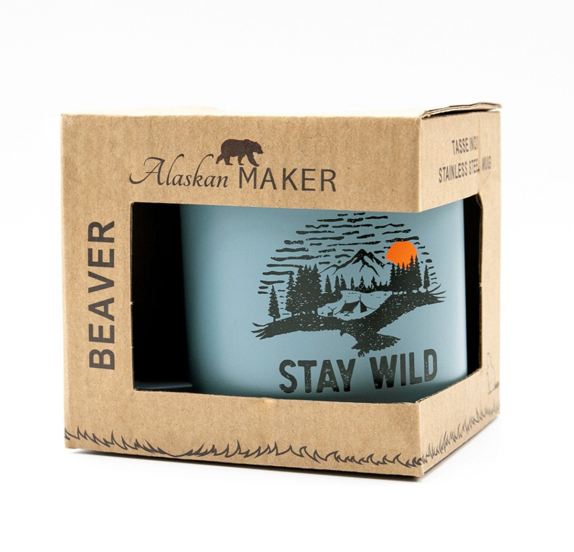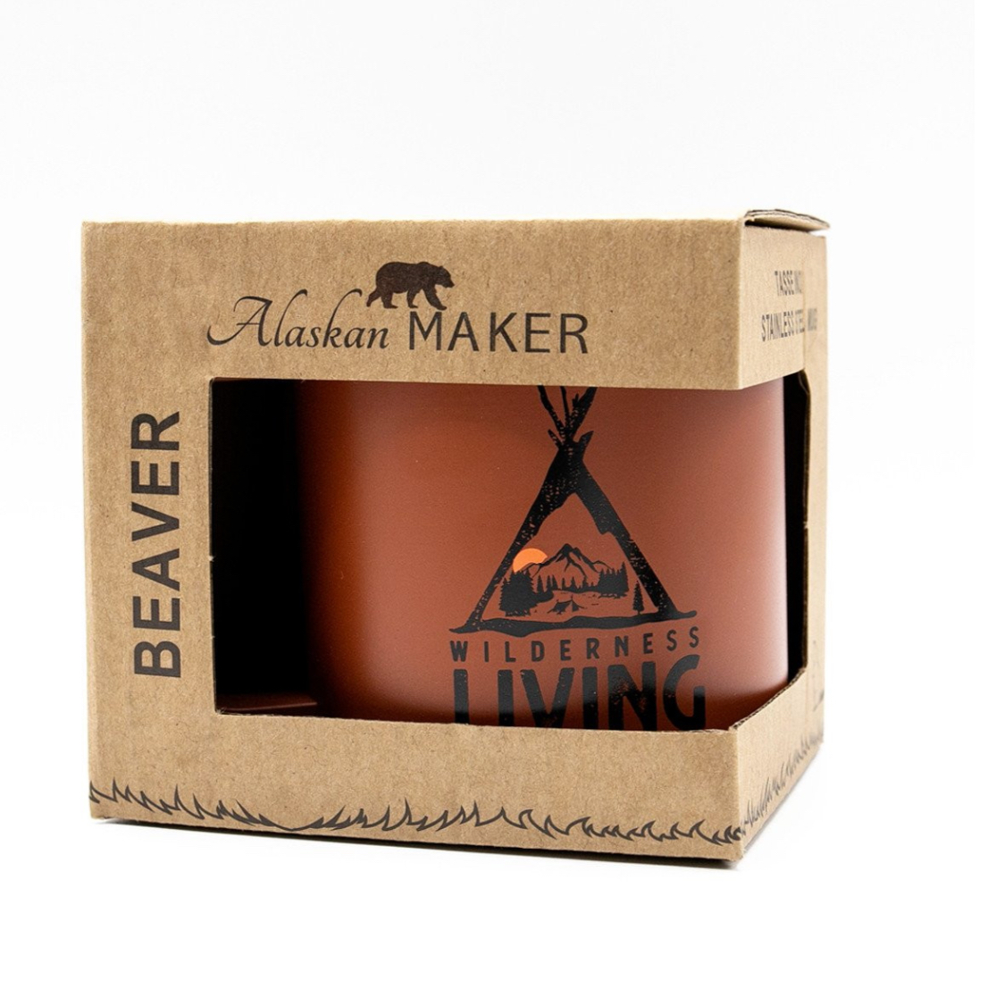 Un mug en inox Alaskan Maker, à la fois solide et élégant, idéal pour garder vos boissons à la bonne température.