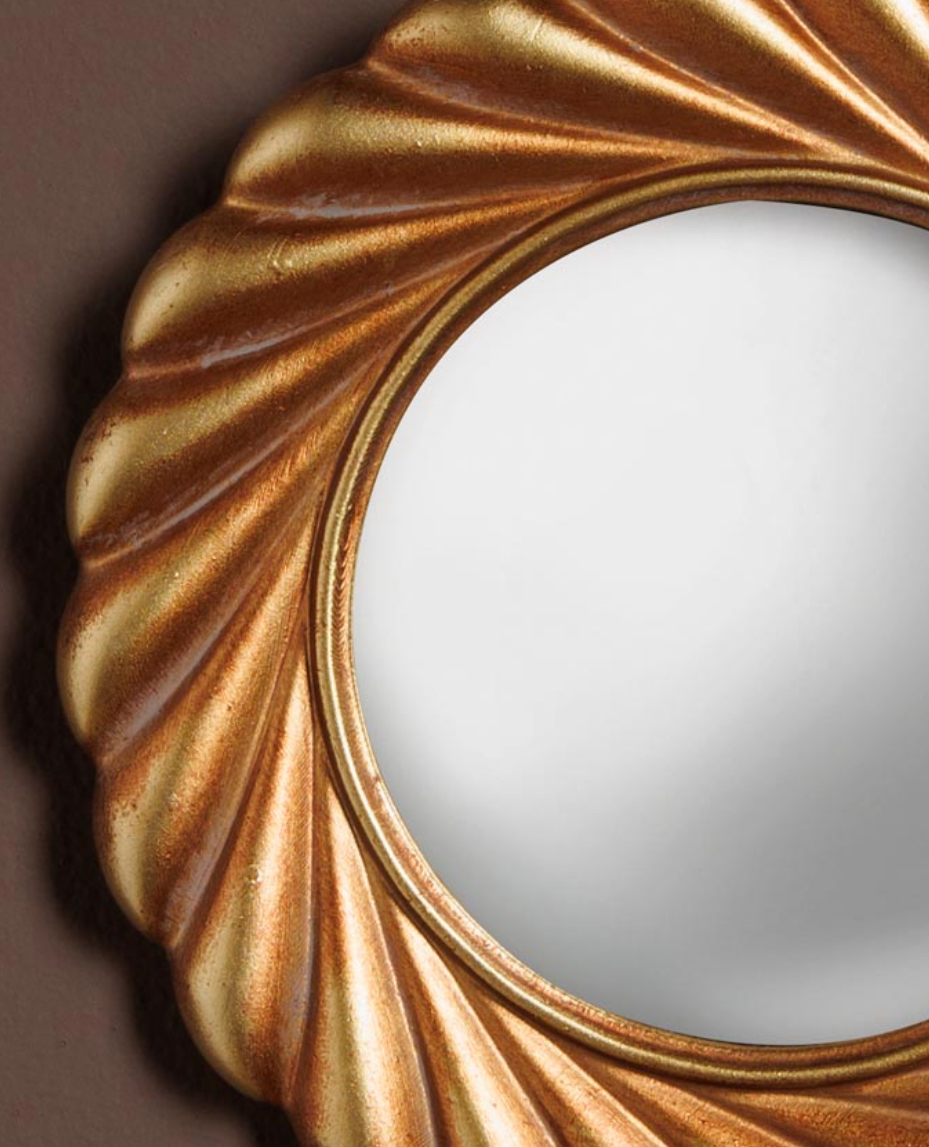 Ce miroir convexe doré aux formes voluptueuses, il séduit par son éclat chaleureux et son allure sculpturale.
