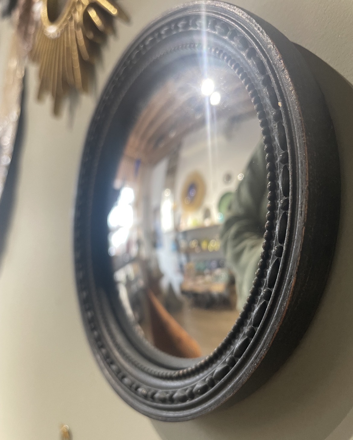 Apportez du caractère à votre décoration avec ce petit miroir convexe noir.