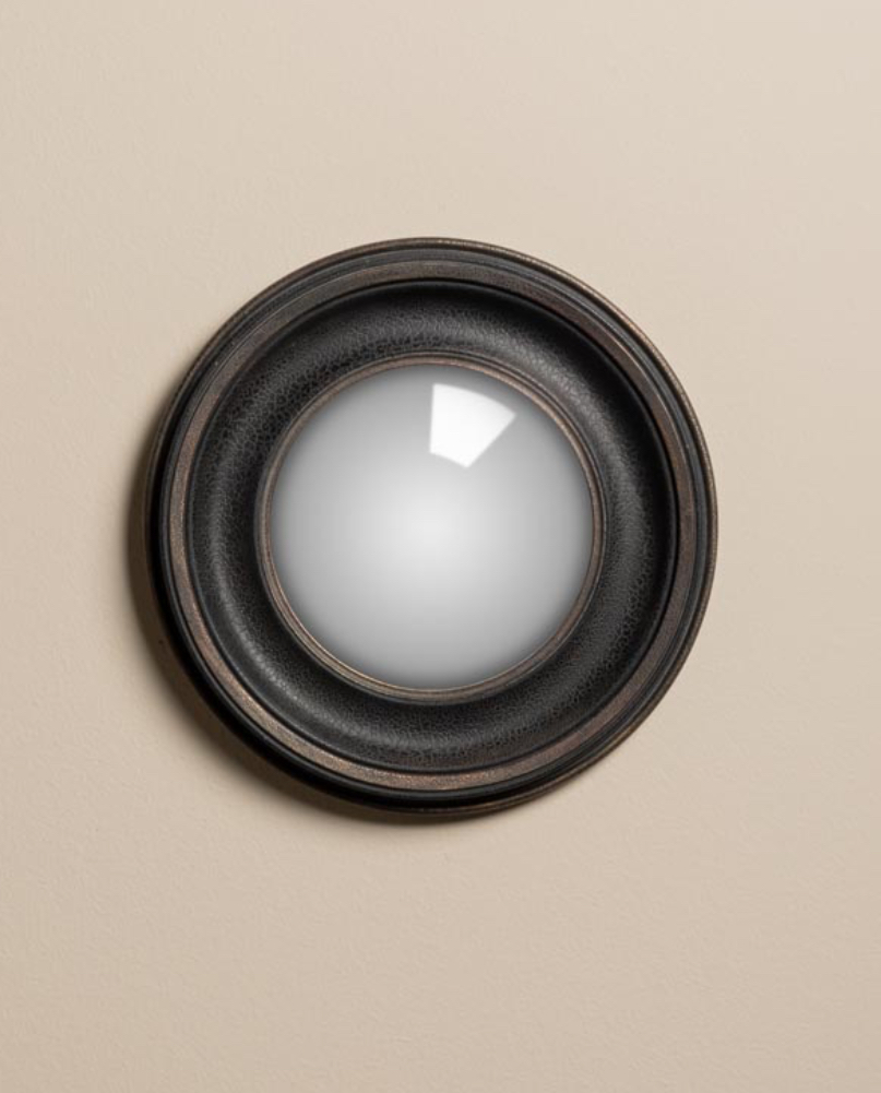 Ce miroir convexe à la patine noire, il séduit par son allure intemporelle et son charme discret.