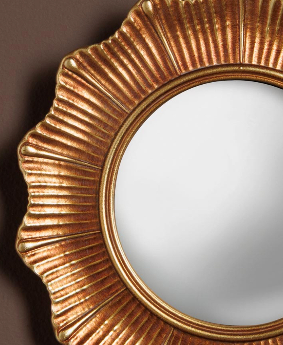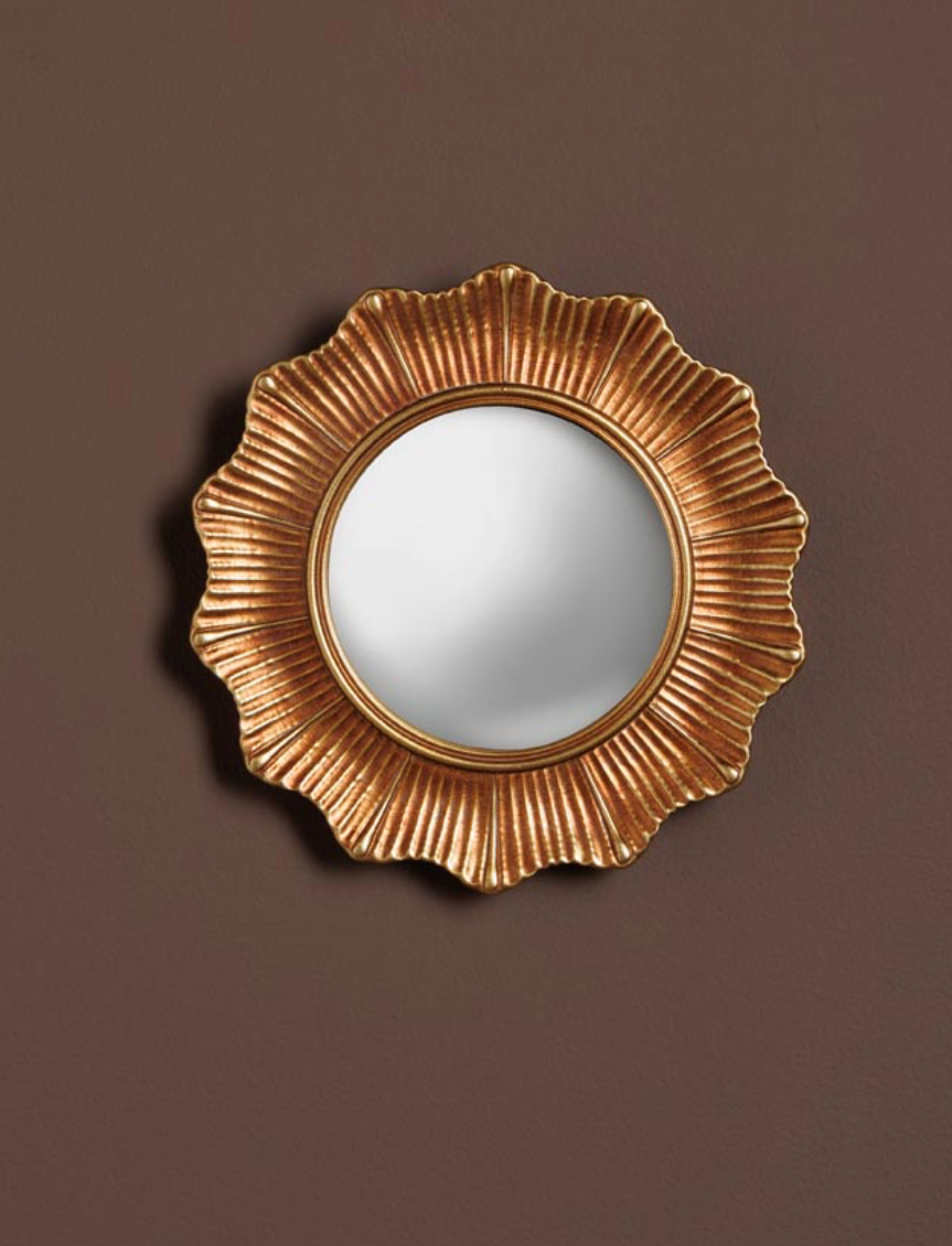 Ce miroir convexe doré aux motifs de vagues, il évoque le mouvement et la fluidité.