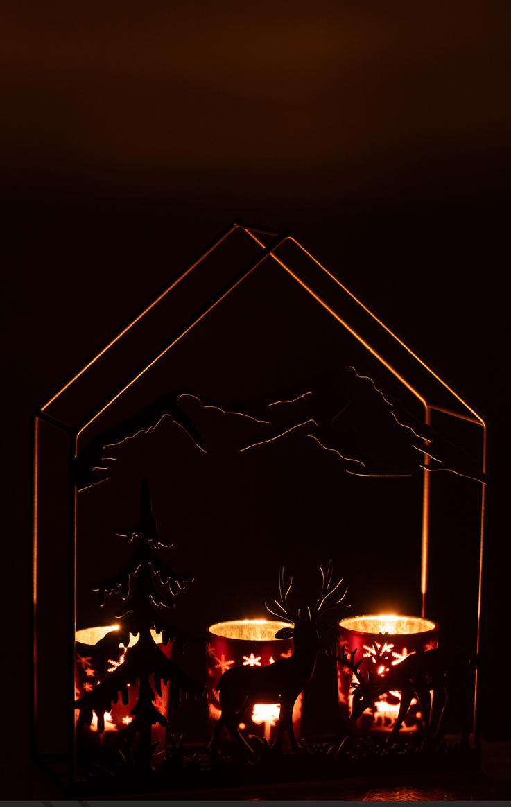 Ce photophore en forme de maison, au design charmant et minimaliste.