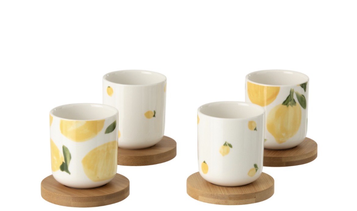 Apportez une touche de fraîcheur à vos pauses café avec ce joli set de 4 tasses décorées de citrons lumineux.