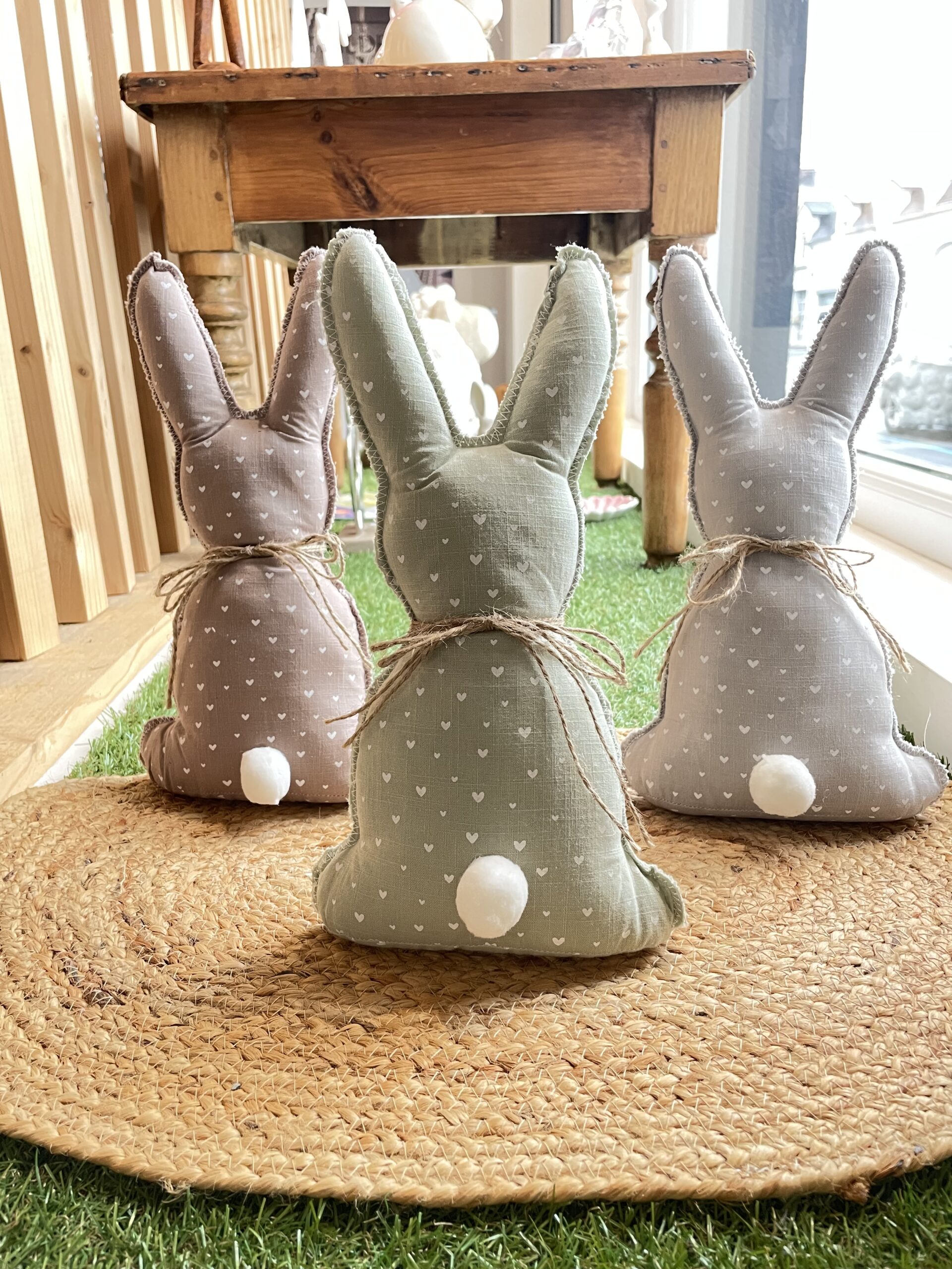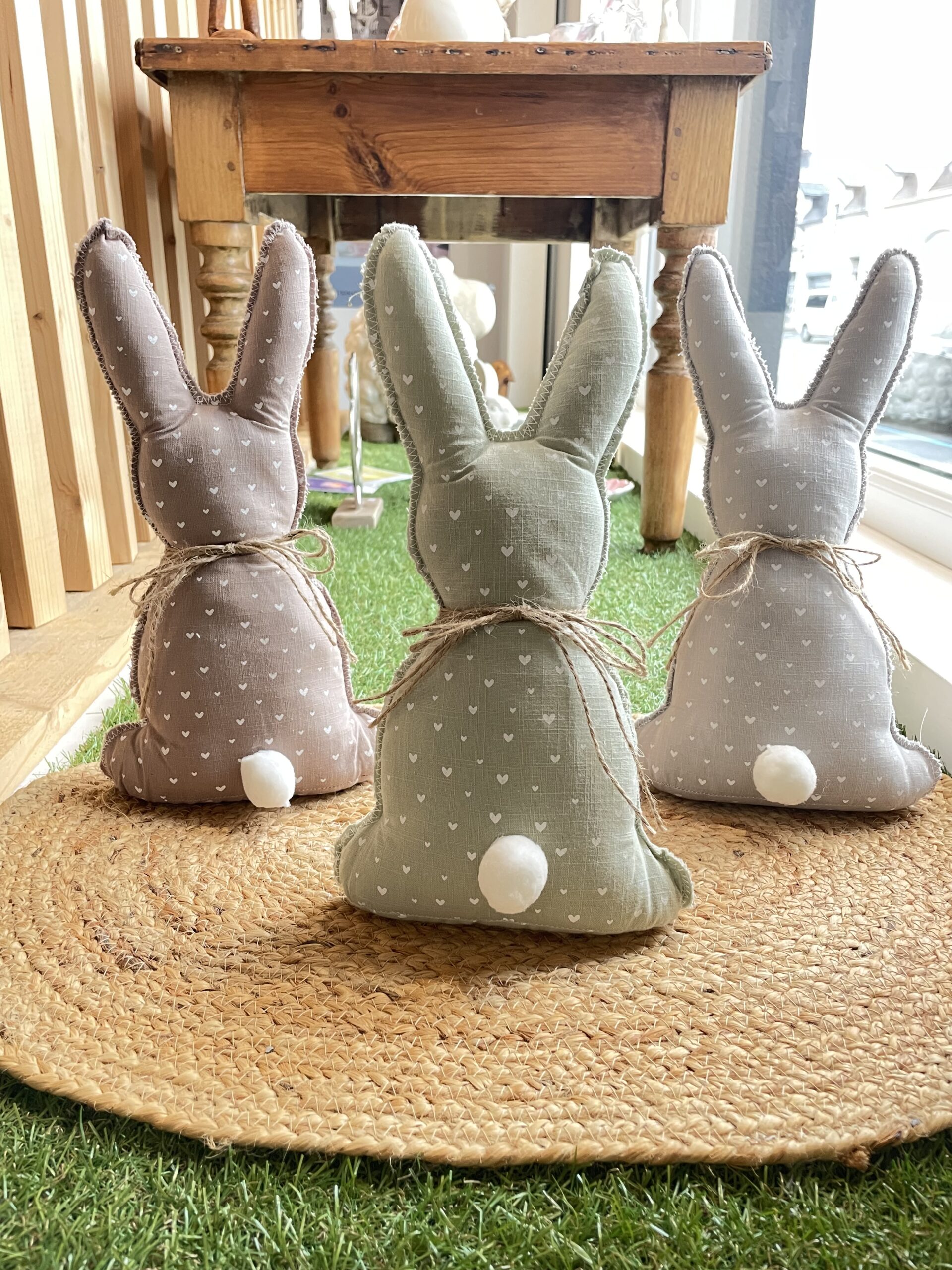 Craquez pour ces adorables lapins en tissu décorés de jolis imprimés de cœurs.