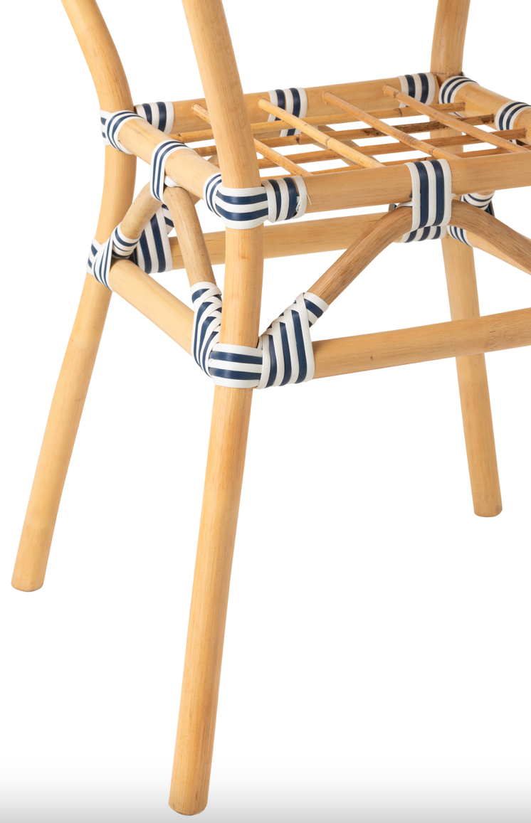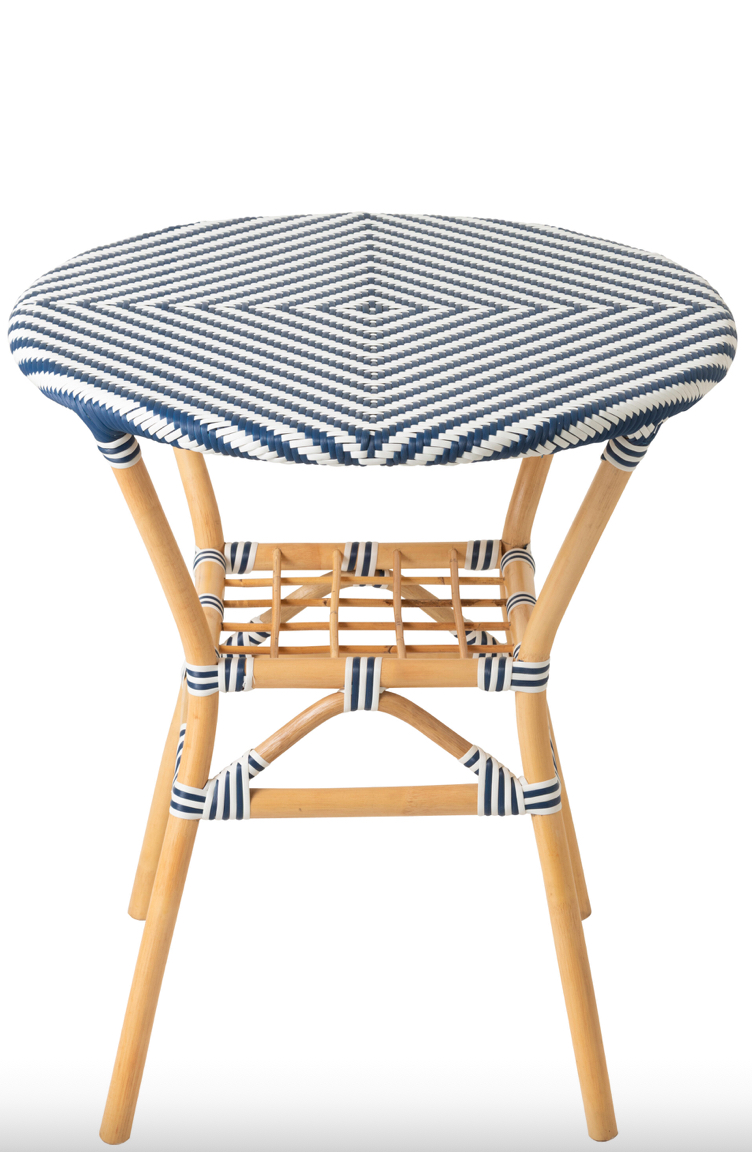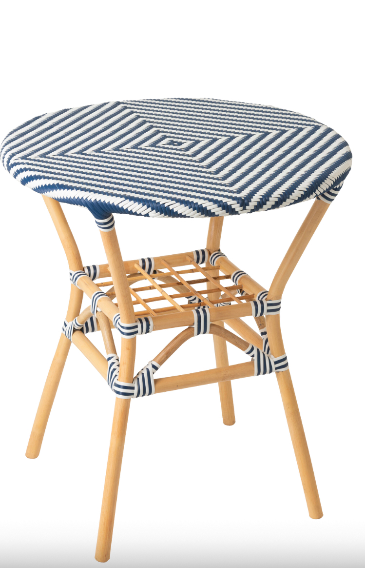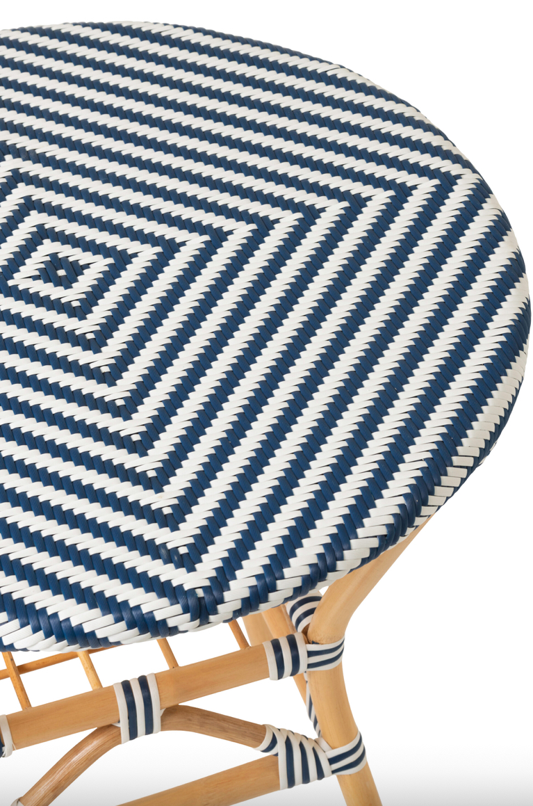Cette table d’extérieur aux rayures bleues et blanches, au style frais et estival.