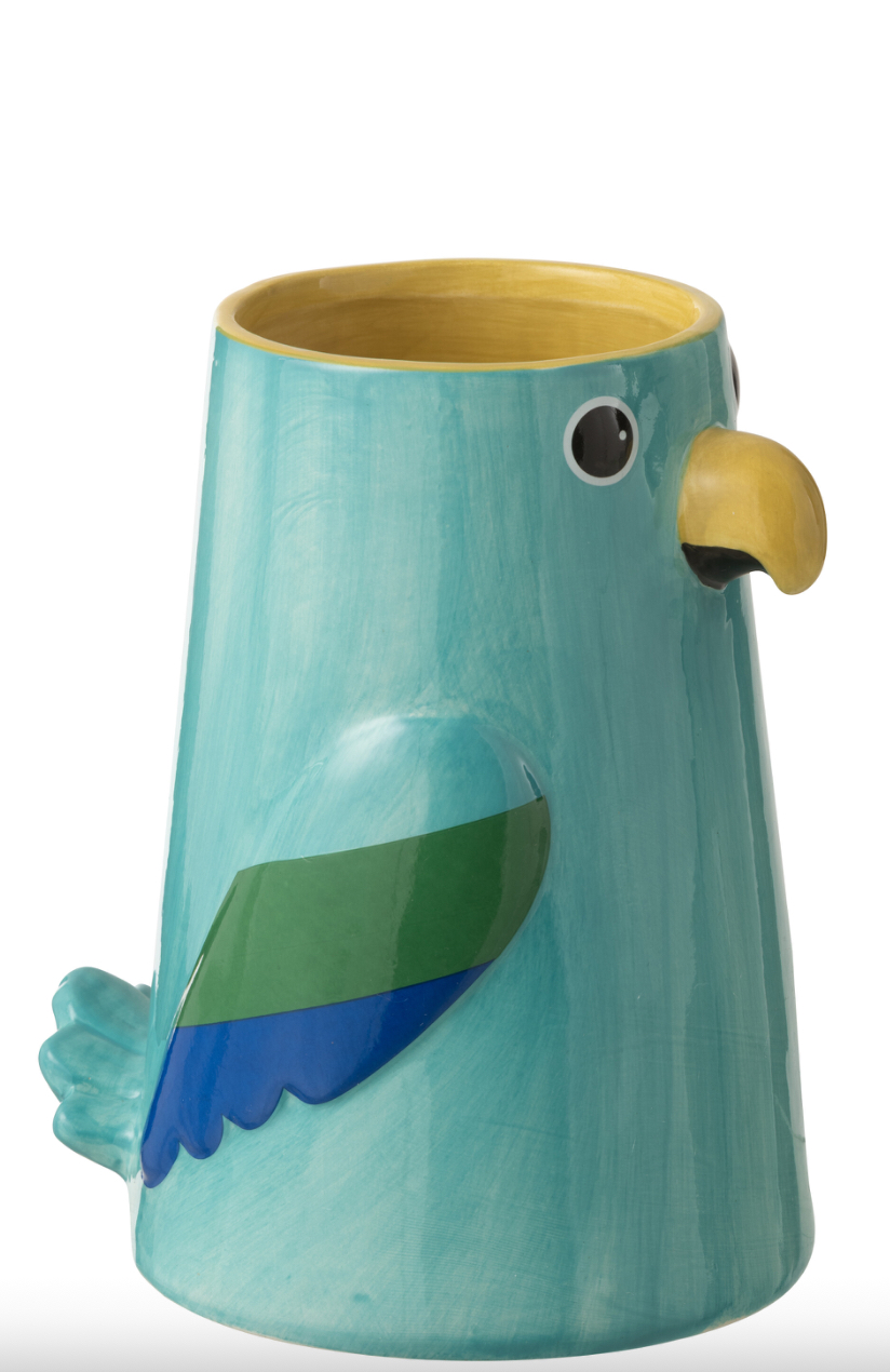 Ce vase original en forme de perroquet, au design audacieux et décoratif.